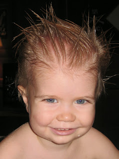 Mix all of the ingredients together and rub it on the problem area of the scalp. I mean saturate the area! Let the oil soak for awhile, and then with a stiff bristle brush, a comb, or I prefer my finger nails you begin to scrub. The flakes will peel off and they can be combed away. Once the area is free of the flakes, you can give the child a bath, which includes many hair washings. I usually have to give an additional bath just to get the remaining oil out, but it is worth it. Now his head is flake free and he is still irresistible.